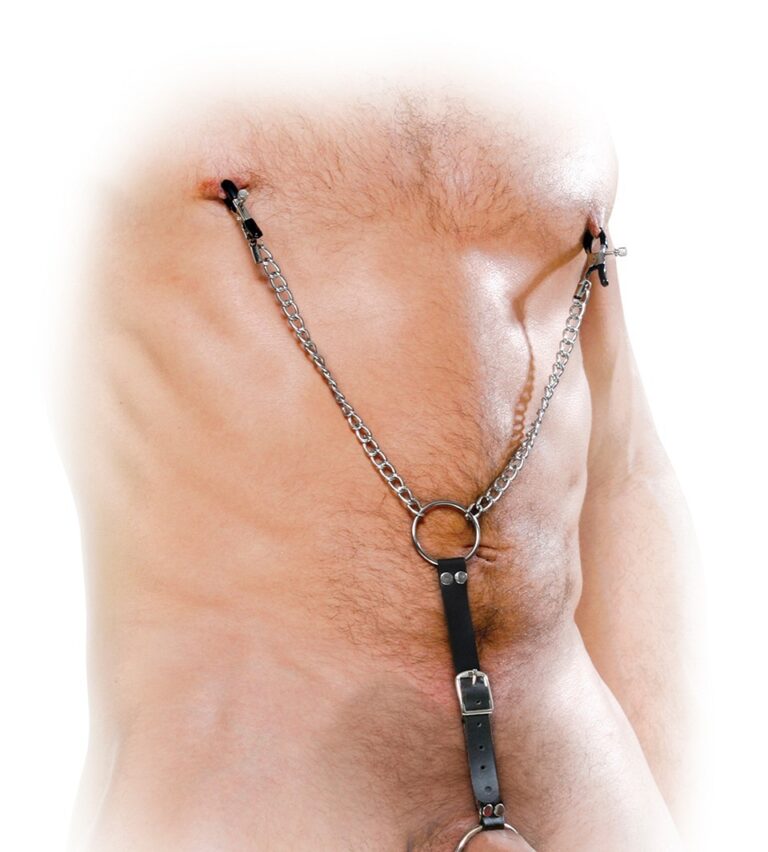 Detta för att du ska kunna få den där extra uppeggande känslan när din penis reser sig givakt. Klämmorna är av krokodilklämmor är fästa på en rund metallpenisring som hjälper till att upprätthålla fasta erektioner och förlänger ejakulation.