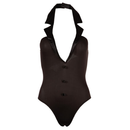 Känn dig sexig i detta Bunny body settet! Det är en urringad halterneck body med en krage, knappar framtill, en borttagbar vita fjäderboll på rumpan, och ett diadem med kaninöron. Rollspel har aldrig varit så här roligt!