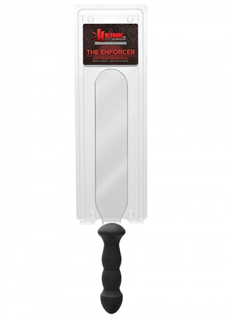 Kink - Enforcer Silicone & Polycarbonate Paddle - Testad för att leverera de hårdaste träffarna varje gång den daskar till. Denna paddels visuellt tydliga slagyta lämnar ingenting för fantasin eftersom den förbinder sig med ett otroligt "thwack!" Ljud och läckra sting. Ett kroppssäkert premium silikonhandtag ger ett fast grepp och är samtidigt en skön leksak som kan användas för penetrering i valfritt hål.