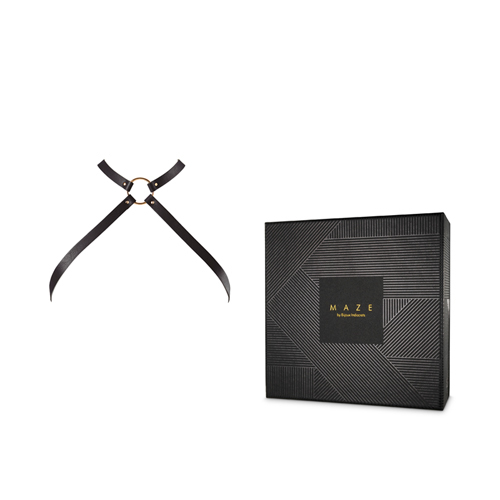 Bondage and lingerie are combined in this beautiful bondage harness from the Maze collection. The BDSM inspired harness is made of great quality PU leather. It has the looks of real leather, but is completely vegan-friendly. The harness consists of various straps that are connected to each other with a metal ring. The straps are adjustable for a perfect fit. Wear it in combination with sexy clothing or lingerie and create the most seductive looks.