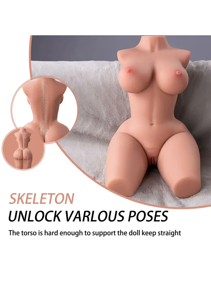 Den flexibla stålramen med rörliga leder gör att hon kan placeras i olika positioner för en skräddarsydd upplevelse. Tillverkad i kroppssäkert TPE-material, slitstark och mjuk som verklig hud.