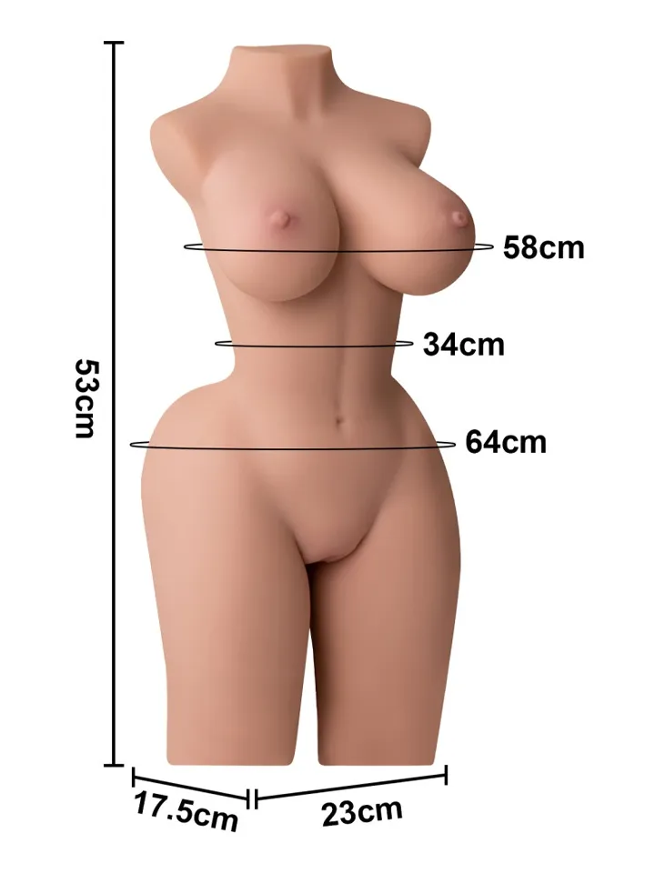 Brösten är tillverkade i gel-fyllt TPE som ger en autentisk känsla vid handstimulering eller bröstsex, medan den detaljerade texturen i de två kanalerna erbjuder varierad stimulans för intensiva orgasmer. Hennes fasta men mjuka rumpa är perfekt för både spanking och passionerade lekar.