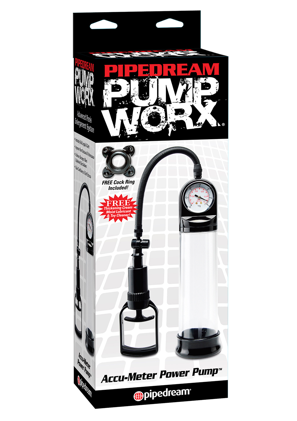 Upptäck den professionella Accu-Meter Power Pump. Denna handhållna penispump är utvecklad som ett säkert, prisvärt alternativ. För bara in din penis i vakuumcylinderröret, kläm ut EZ-greppets avtryckarhandtag och se din penis svälla av kraft! Den mjuka PVC-hylsan bildar en perfekt tätning mot huden och skapar ett kraftfullt vakuum inuti kammaren, vilket tvingar din erektion att snabbt expandera dess längd och omkrets. Den klara, vakuumcylindern gör att du kan se din penis bli större och tjockare för varje tryck på spaken. Röret är tillverkat av tjock, akryl av hög kvalitet och märkt med både metriska och amerikanska standardgraderingar för att mäta din tillväxt. Med precisionstrycksmätaren kan du övervaka din pumpförlopp och se mängden vakuumtryck. När du har nått önskad storlek trycker du helt enkelt på snabbventilen för att omedelbart avlasta trycket så är du redo att njutning!