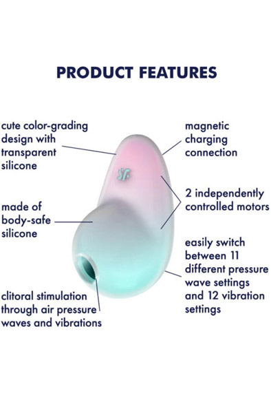 Med 11 tryckvågsprogram och 12 vibrationslägen kan du skräddarsy din njutning och utforska en värld av varierade sensationer. Den dubbla motorfunktionen tillåter oberoende kontroll av vibrations- och tryckvågsinställningarna, vilket ger en personligt anpassad upplevelse.